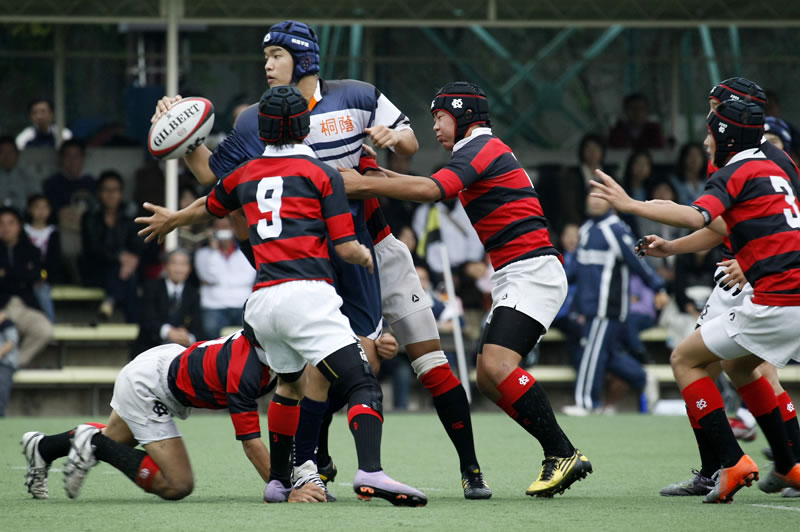 10月24日に『日本ラグビー発祥の碑』が立つ慶應義塾大学ラグビー場で、熱闘が続く秋季中学校大会がいよいよファイナルデーを迎えました。秋らしい空気の中、会場には沢山の応援の方々が詰めかけ、中学生の熱戦に熱い声援を送っていました。決勝は桐蔭学園 対 慶應義塾普通部、3位決定戦は関東学院 対 関東学院六浦と2試合ともに春季大会と同じ顔合わせ。3位決定戦は勝者だけが東日本大会の切符を手にできるサバイバルマッチで、因縁の関東学院 対 関東学院六浦の兄弟対決です。準決勝での両チームは、関東六浦が桐蔭学園から終了直前までリードを奪いながらの惜敗、関東学院は何度も慶應ゴールに迫り、ここまで失トライ0の慶應から先制を含む3トライを奪い脅かしました。決勝進出はなりませんでしたが両チームとも良質なラグビー力を磨いて来ました。先に行われた3位決定戦は、関東学院が序盤から優位に試合を進め、関東六浦に終始圧力をかけ続けて東日本大会の3枚目の切符を手にしました。接戦が予想された決勝戦は、試合開始直後から激しいオフェンスの応酬になり、防戦の慶應はハイタックルで17分にシンビン退場者を出します。桐蔭リードで折り返した後半、慶應が11人の攻撃で集中し逆転します。このトライを機に流れは完全に慶應ペース、終了間際に桐蔭が1トライ返しますがノーサイド。予想外のハイスコアゲームで慶應が頂点に立ちました。第1回全国大会で準優勝し、予選から圧倒的な攻撃力で勝ち上がった慶應が一回り大きくなった勇姿を見せて神奈川の秋を制しました。春季には高いレベルを各方面に知らしめた神奈川の中学生ラガー、狙うのは再び『東日本大会決勝戦・神奈川ダービー』です。代表3チームの東日本大会での快進撃をぜひ応援してください!